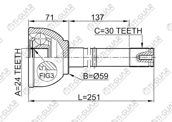 ШРУС наружный / правый /левый /TI-GUAR для Toyota Land Cruiser 1998-2007 FZJ105L FZJ105R HZJ105L HZJ105R; 24*59*30; TG-9558; (TO-E058 TO-058 0110058) 4340560110 TY58 JCT0062